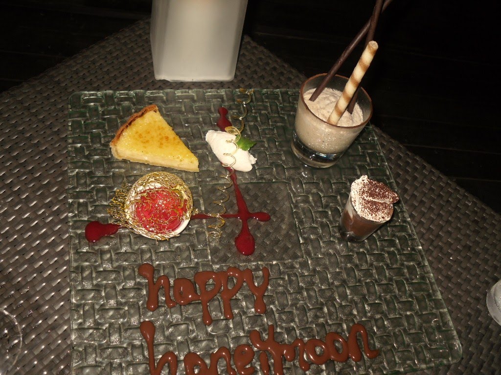 Shardy surprised us at the end of the meal with this dessert for us to share and Chris is such a chocoholic that he scooped up all the chocolate sauce writing!...